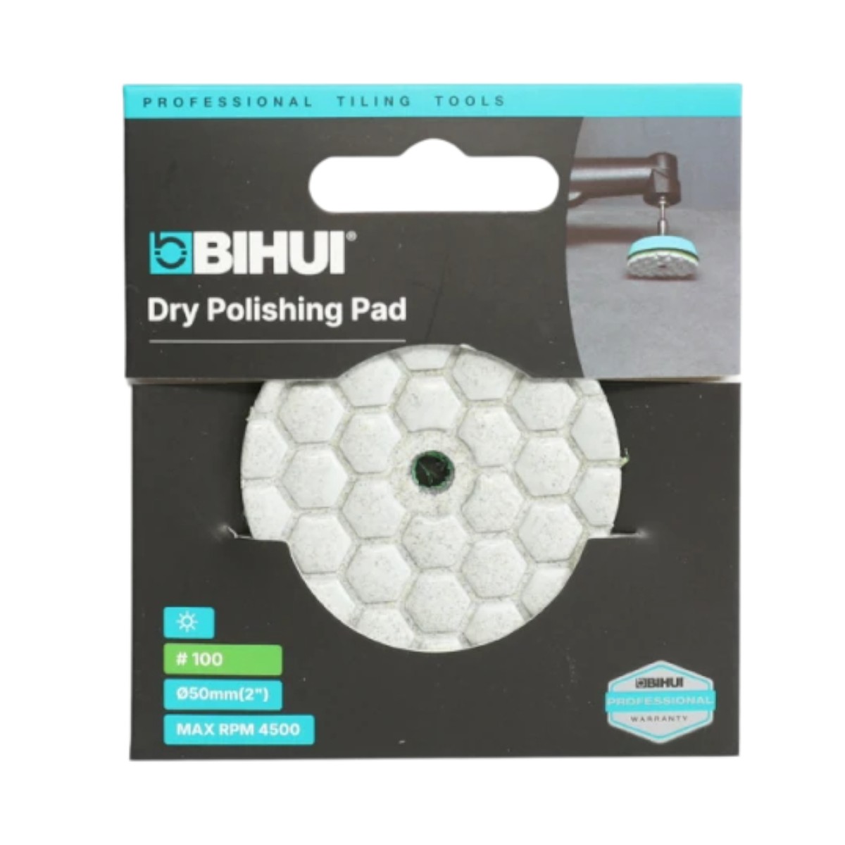 Этот пад диаметром 50 мм с зернистостью #100 следует за более грубым падом #50 (AGMPD1). Его основная задача — устранить глубокие царапины и риски, оставленные предыдущим, более абразивным кругом, и подготовить поверхность к более тонкой полировке. Он обеспечивает более гладкое шлифование, что является необходимым шагом для достижения идеальной финишной обработки краев и фасок на керамограните, плитке, мраморе, граните и другом камне. Как и другие пады этой серии, он крепится на суппорт 50 мм при помощи системы "липучка" (велкро) и предназначен для сухого использования.