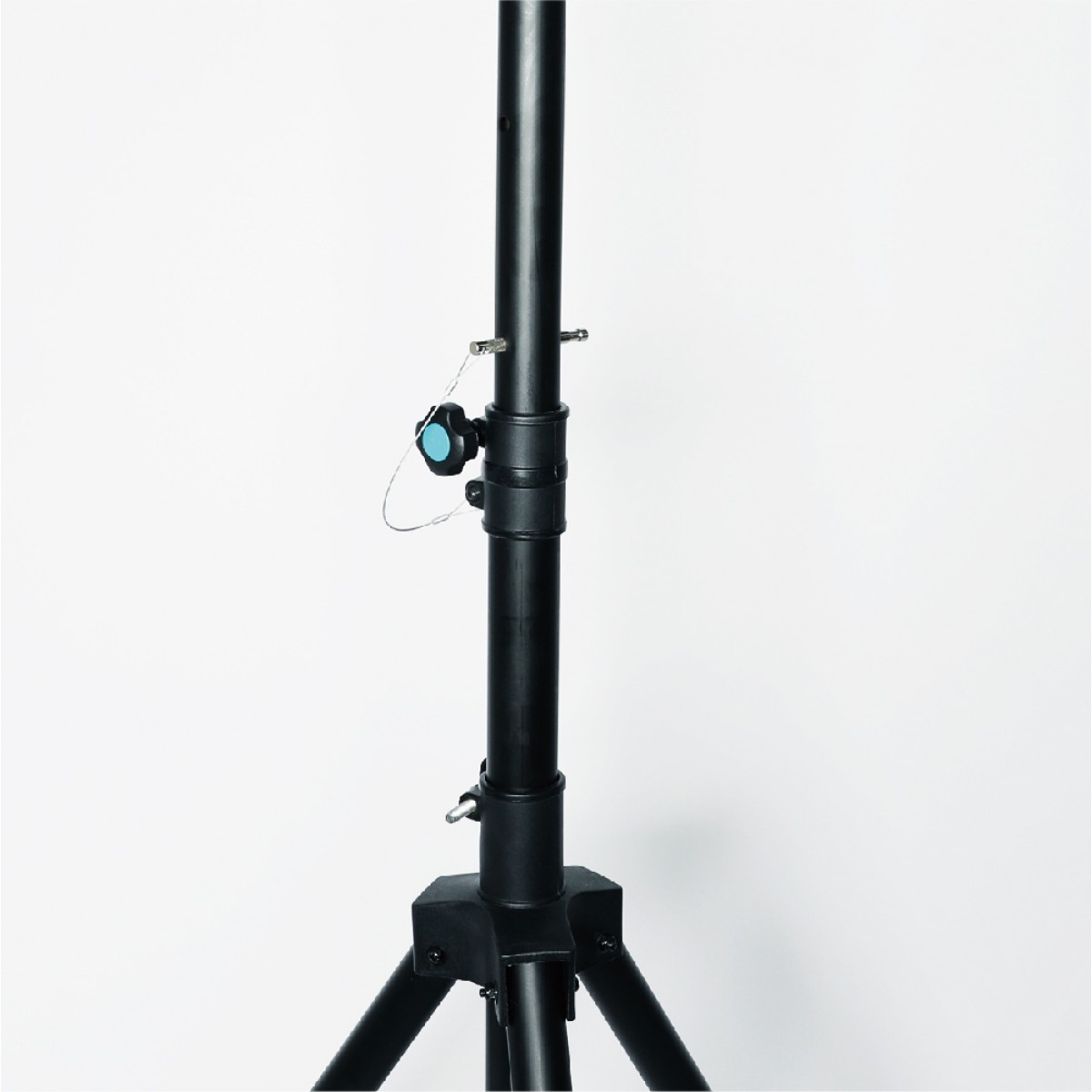 Регулируемая высота: Высота штатива регулируется в диапазоне от 1,46 м до 2,2 м, что позволяет настроить оптимальную высоту освещения для разных задач, от напольных работ до освещения потолков.